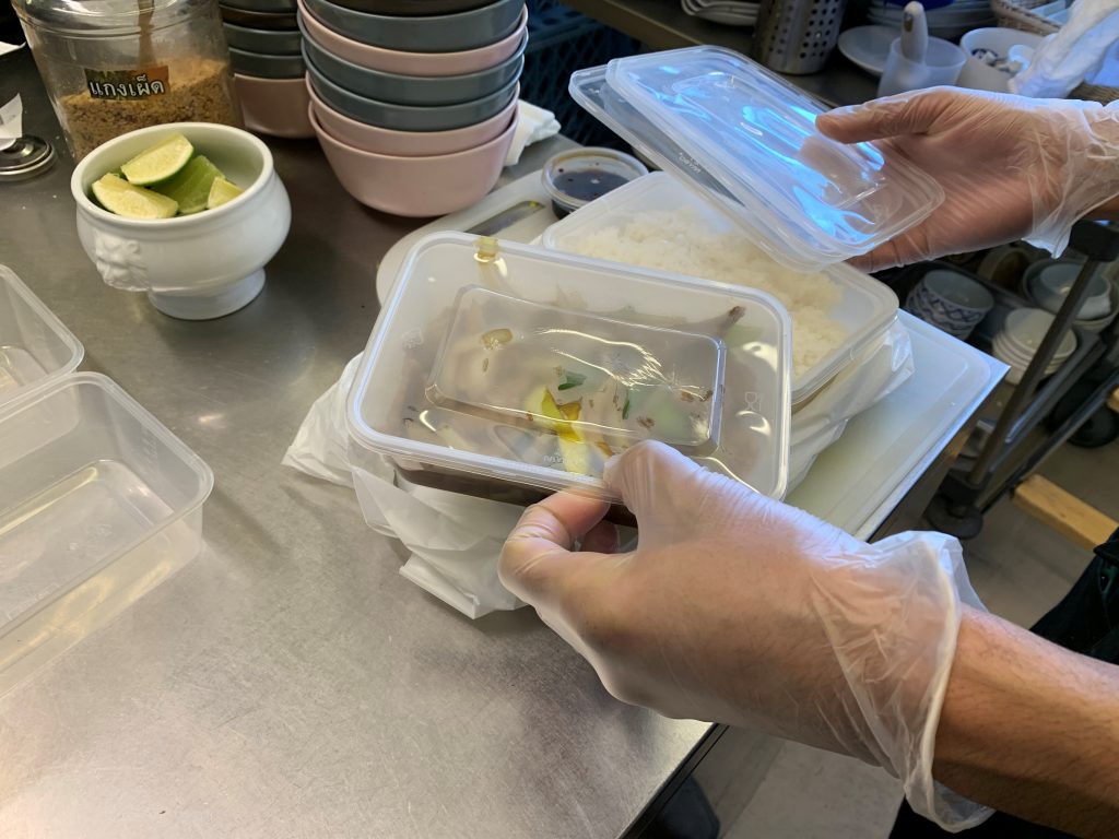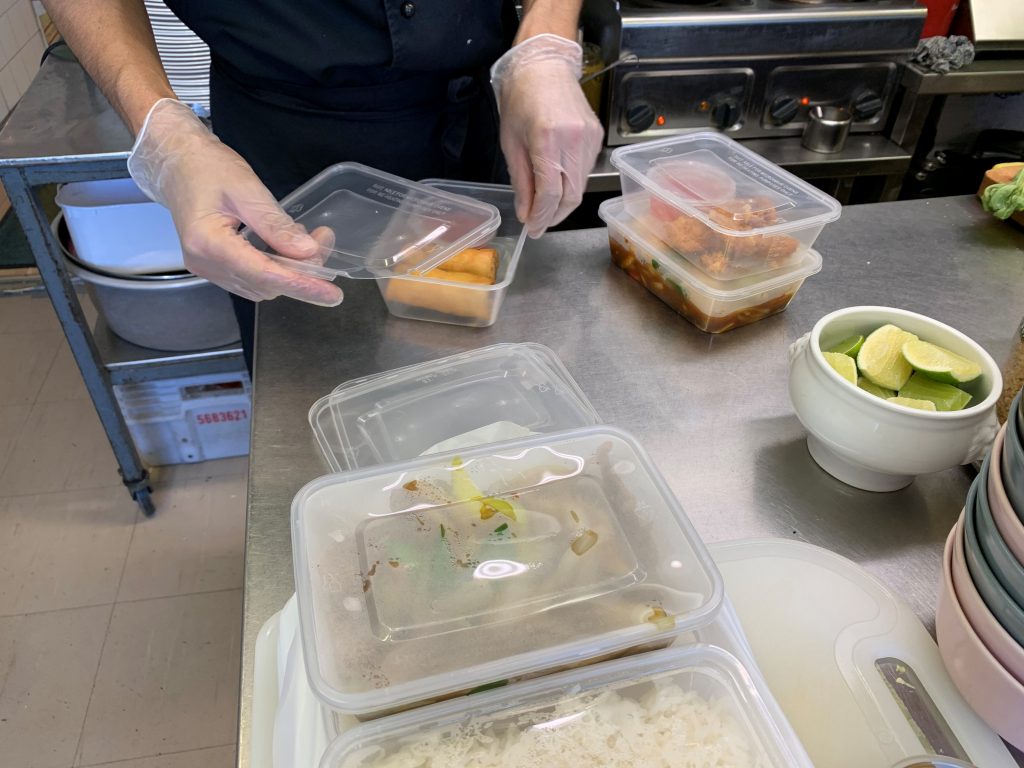 Riisi, joka on valmistettu hetki sitten, pakataan myös kertakäyttöiseen rasiaan