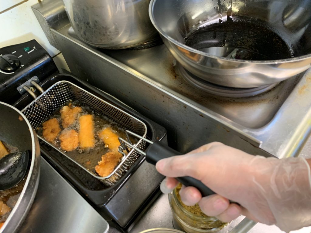 Ruoka valmistetaan suojakäsineet kädessä tuoreista raaka-aineista